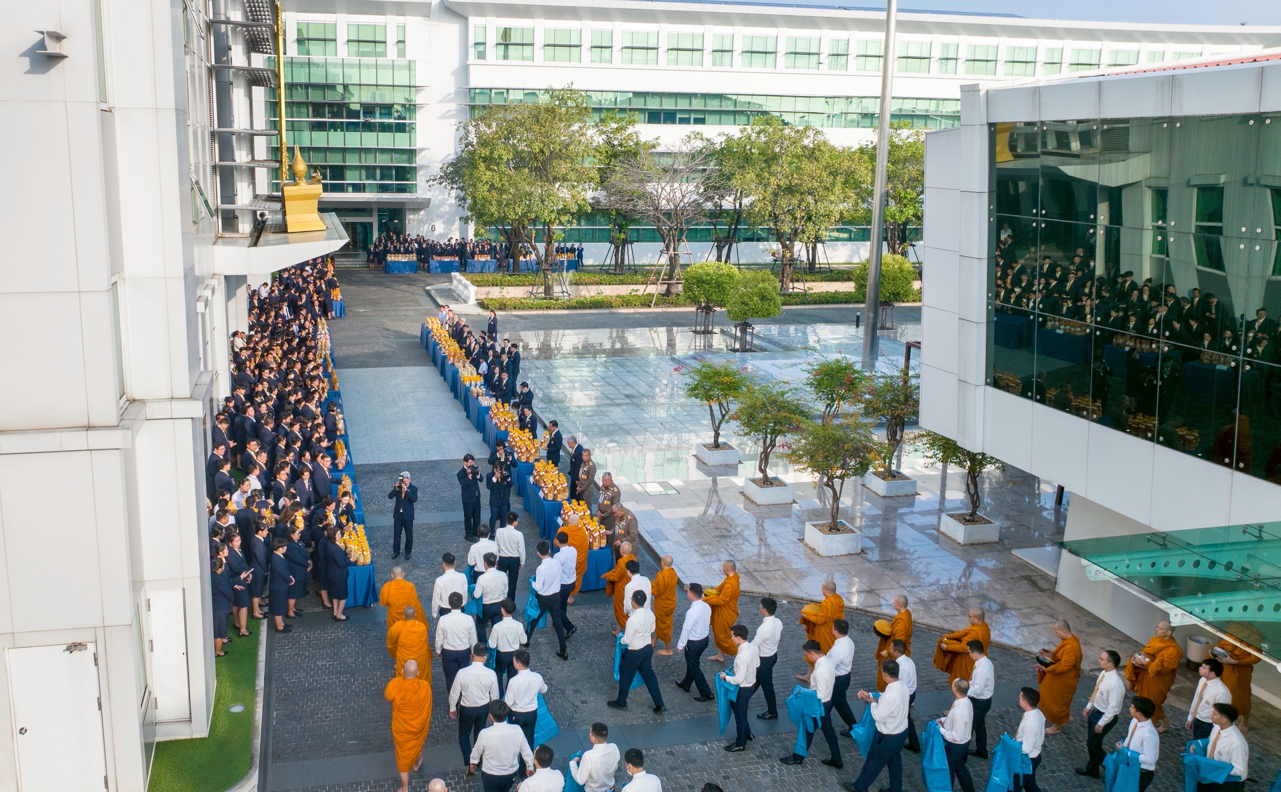 พิธีตักบาตรพระสงฆ์ ณ ถนนด้านข้างอาคารอำนวยการ