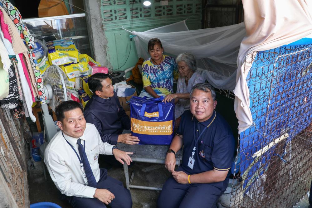 สำนักงานพระคลังข้างที่ ส่งความห่วงใย มอบ "ถุงธารน้ำใจ สำนักงานพระคลังข้างที่" เพื่อบรรเทาความเดือดร้อนให้กับผู้เช่าที่ได้รับผลกระทบจากเหตุอุทกภัยบนพื้นที่สำนักงานฯ ณ บ้านพัก บริเวณชุมชนวัดอินทร์บรรจง เขตบางคอแหลม กรุงเทพมหานคร เมื่อวันที่ 16 ตุลาคม 2568
