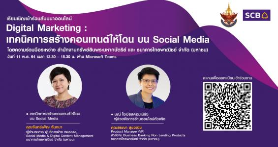 สำนักงานทรัพย์สินพระมหากษัตริย์ ร่วมกับ ธนาคารไทยพาณิชย์ จำกัด (มหาชน) ขอเชิญเข้าร่วมสัมมนาออนไลน์ "Digital Marketing" เทคนิคการสร้างคอนเทนต์ให้โดน บน Social Media