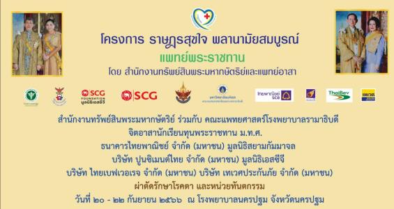 โครงการ “ราษฎรสุขใจ พลานามัยสมบูรณ์ แพทย์พระราชทาน” ครั้งที่ 11 ประจำปี 2566 ณ โรงพยาบาลนครปฐม จังหวัดนครปฐม