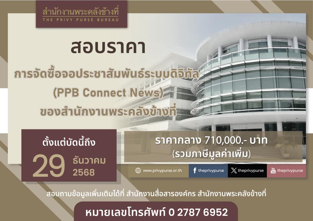 เรื่อง สอบราคาการจัดซื้อจอประชาสัมพันธ์ระบบดิจิทัล (PPB Connect News)