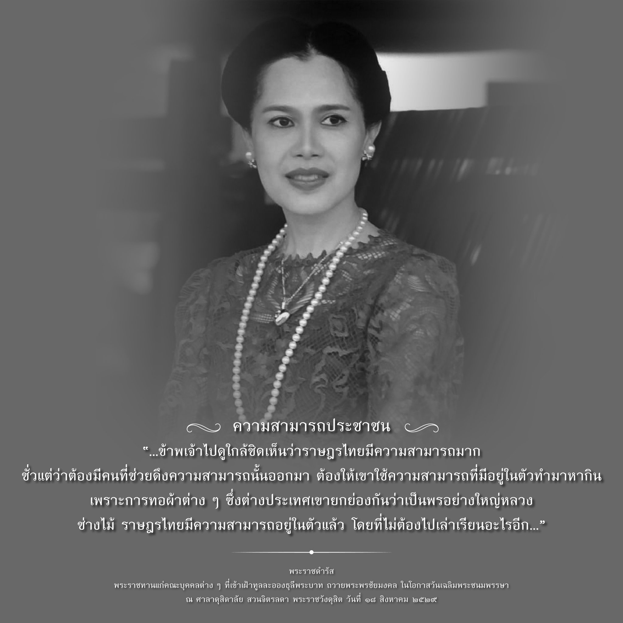 ณ ศาลาดุสิดาลัย สวนจิตรลดา พระราชวังดุสิต วันที่ 18 สิงหาคม 2529