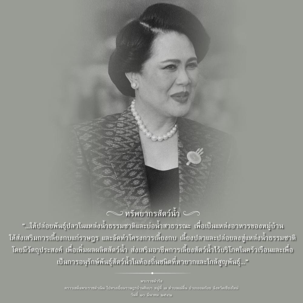 “...ให้ปล่อยพันธุ์ปลาในแหล่งน้ำธรรมชาติและบ่อน้ำสาธารณะ เพื่อเป็นแหล่งอาหารของหมู่บ้าน ให้ส่งเสริมการเลี้ยงกบแก่ราษฎร และจัดทำโครงการเลี้ยงกบ เลี้ยงปลาและปล่อยลงสู่แหล่งน้ำธรรมชาติ โดยมีวัตถุประสงค์ เพื่อเพิ่มผลผลิตสัตว์น้ำ ส่งเสริมอาชีพการเลี้ยงสัตว์น้ำไว้บริโภคในครัวเรือนและเพื่อเป็นการอนุรักษ์พันธุ์สัตว์น้ำในท้องถิ่นชนิดที่หายากและใกล้สูญพันธุ์...”