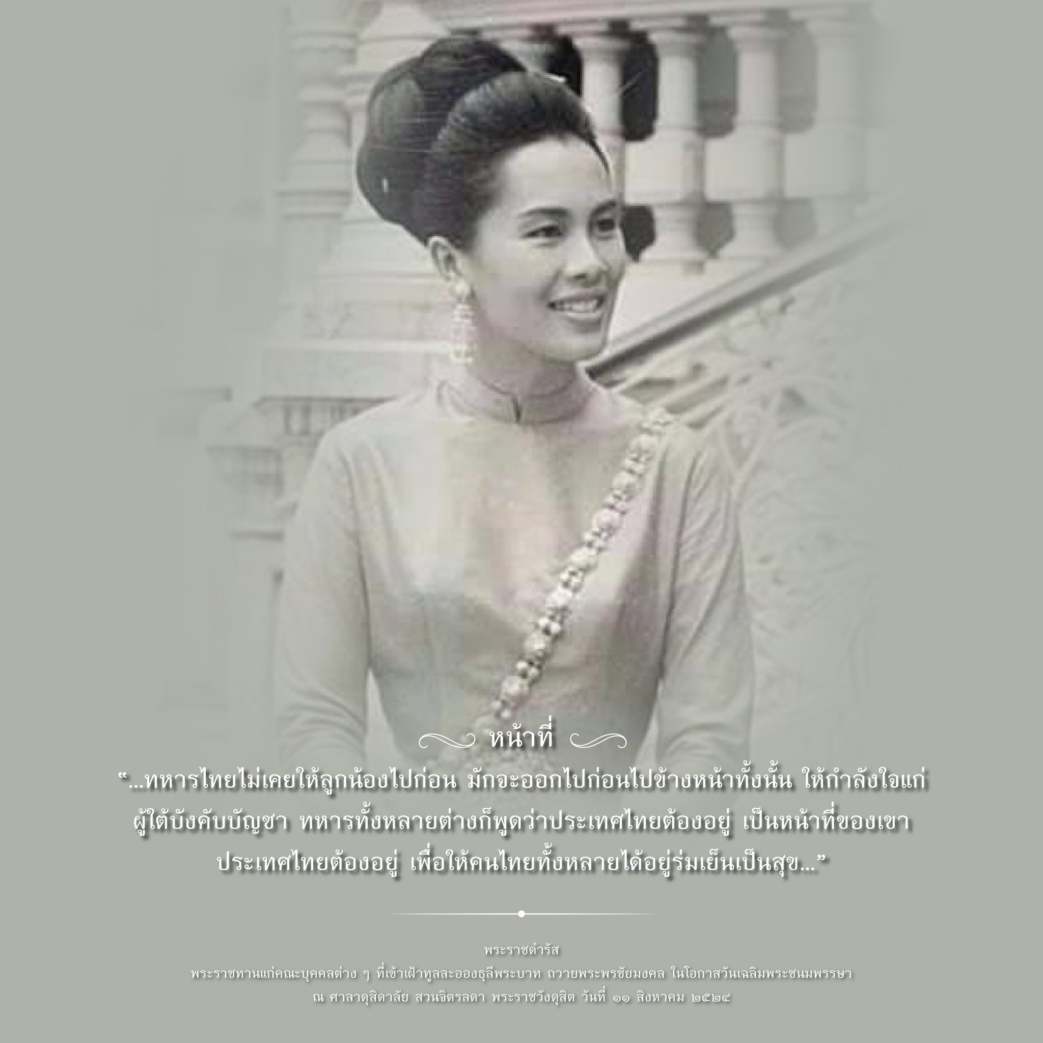 “...ทหารไทยไม่เคยให้ลูกน้องไปก่อน มักจะออกไปก่อนไปข้างหน้าทั้งนั้น ให้กำลังใจแก่ผู้ใต้บังคับบัญชา ทหารทั้งหลายต่างก็พูดว่าประเทศไทยต้องอยู่ เป็นหน้าที่ของเขา ประเทศไทยต้องอยู่ เพื่อให้คนไทยทั้งหลายได้อยู่ร่มเย็นเป็นสุข...”