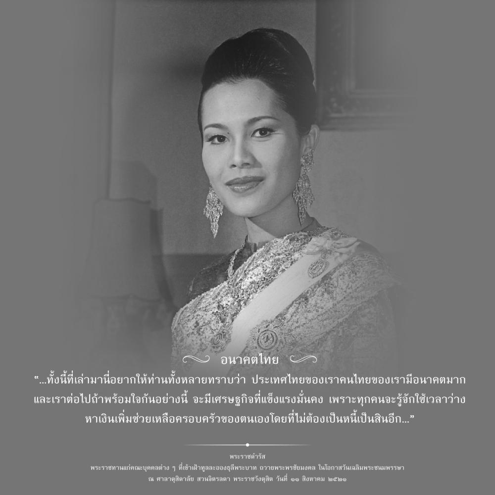 “...ทั้งนี้ที่เล่ามานี่อยากให้ท่านทั้งหลายทราบว่า ประเทศไทยของเราคนไทยของเรามีอนาคตมาก และเราต่อไปถ้าพร้อมใจกันอย่างนี้ จะมีเศรษฐกิจที่แข็งแรงมั่นคง เพราะทุกคนจะรู้จักใช้เวลาว่าง หาเงินเพิ่มช่วยเหลือครอบครัวของตนเองโดยที่ไม่ต้องเป็นหนี้เป็นสินอีก...”